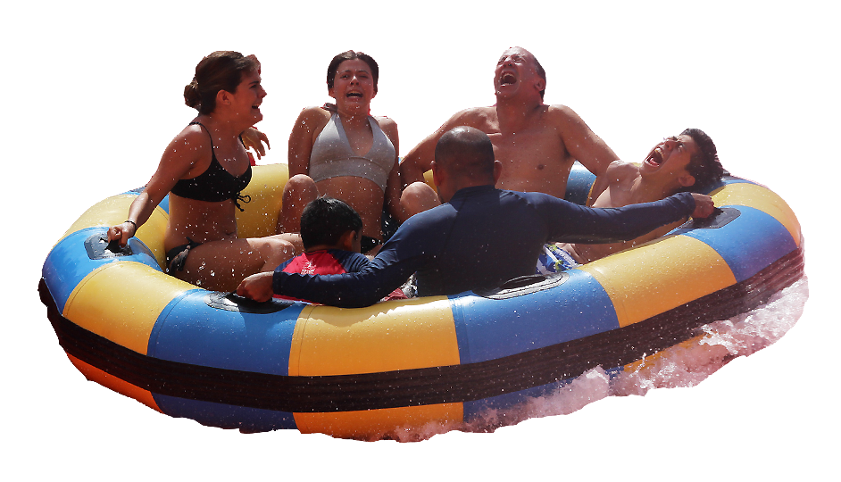 Utilice la balsa familiar en esta atracción. Este juego es ÚNICAMENTE para 5 personas.