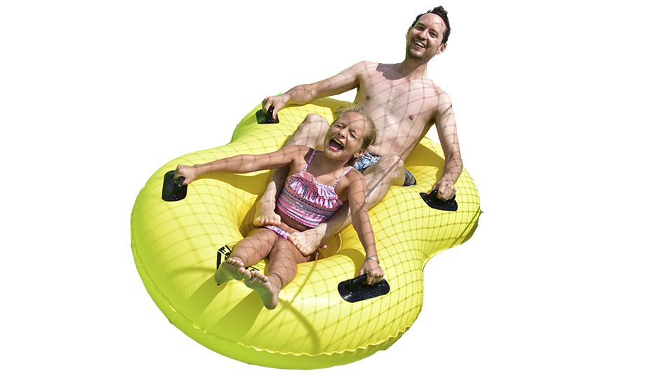 Las balsas deben usarse en posición sentada con vista al frente y sujetando firmemente las agarraderas durante todo el trayecto.